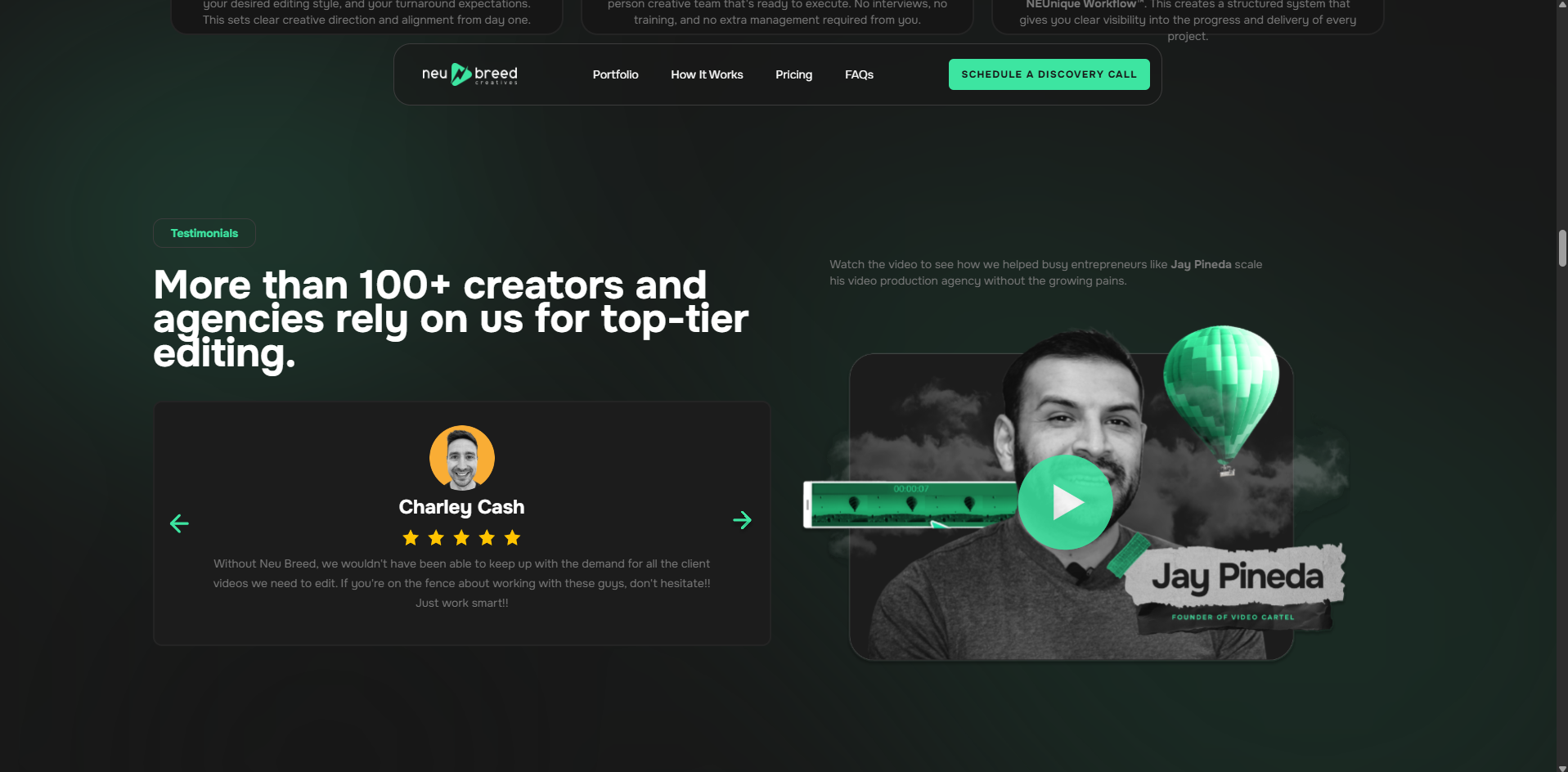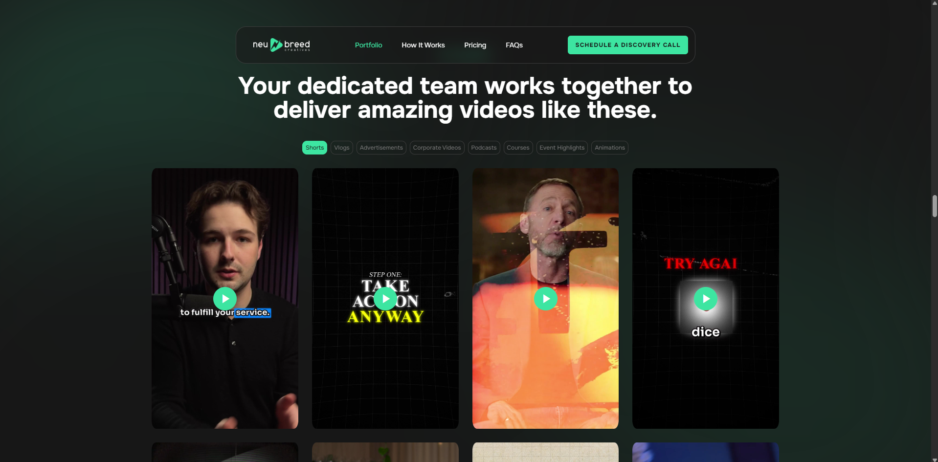 Neu Breed needed to differentiate itself in a crowded video‑editing marketplace. Neu Breed wanted a site that positions it as a reliable partner, highlights the value of reclaiming up to 40 hours per week without managing a team, and converts visitors into discovery‑call bookings.